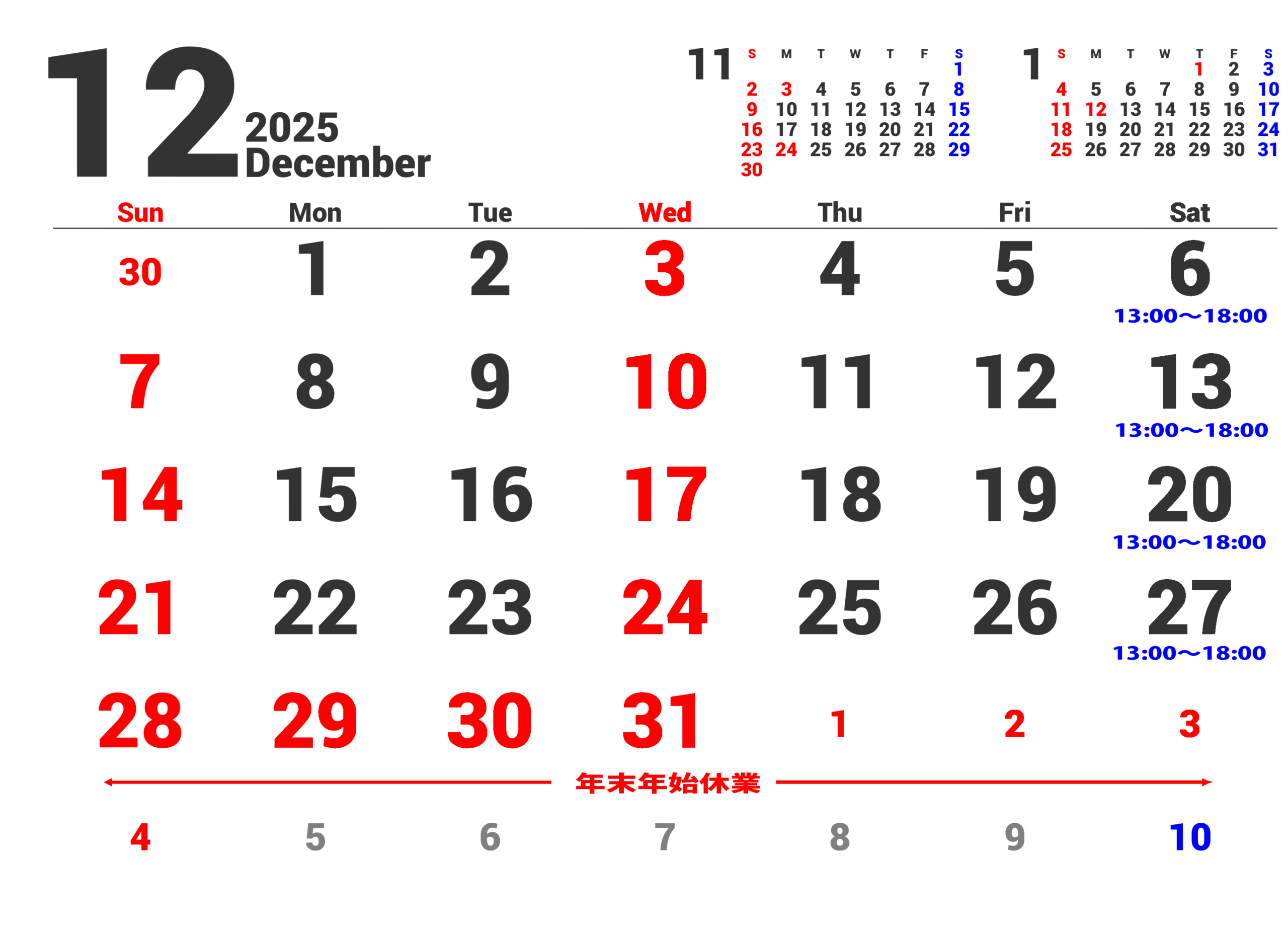 誠に勝手ながら12/28~1/4まで年末年始休業といたします。